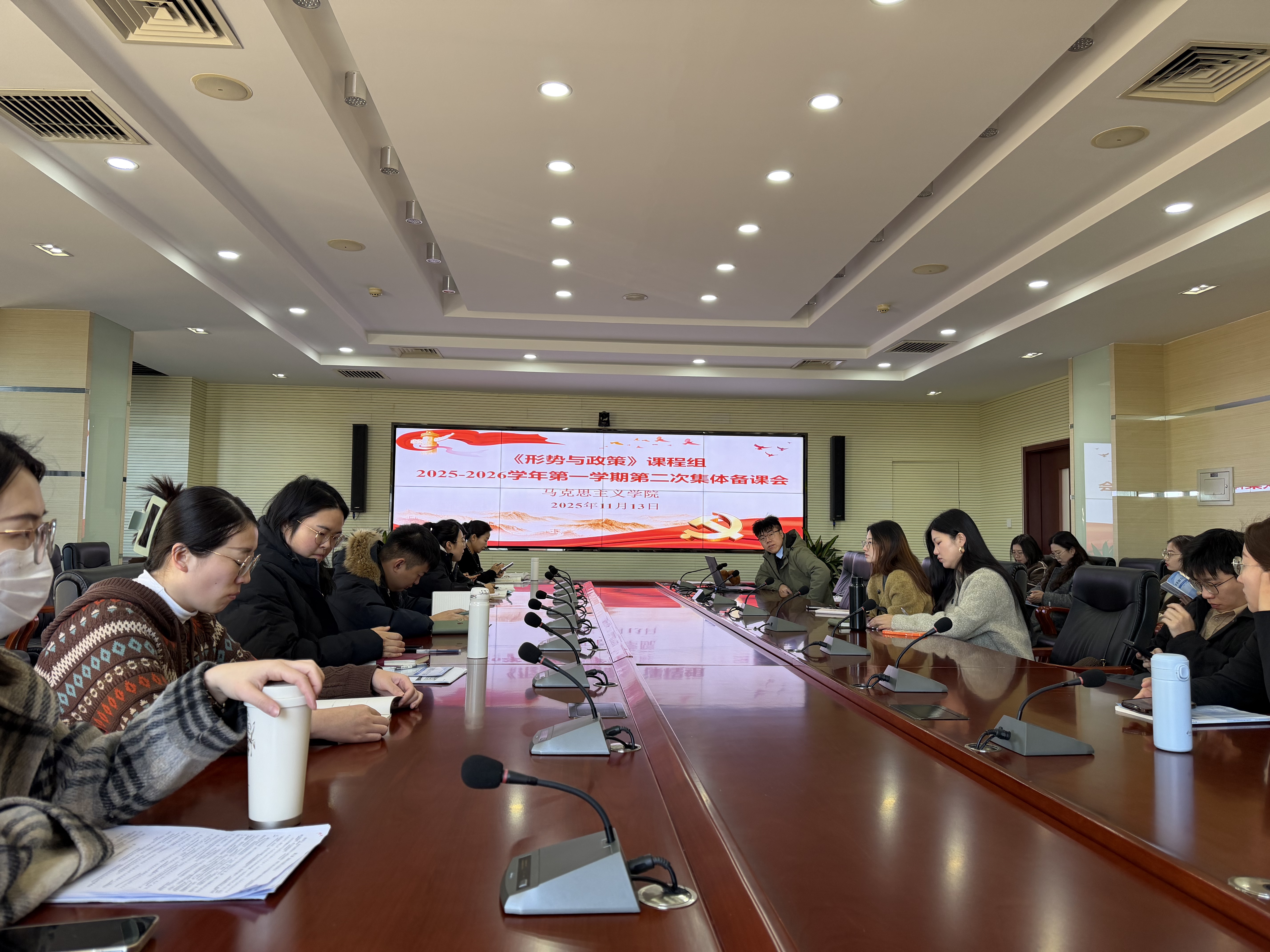 为持续深化《形势与政策》课程教学改革,精准把握课程核心要义与时代脉搏,切实提升教学的针对性和实效性,11月13日,马克思主义学院《形势与政策》课程组在办公楼528会议室召开2025—2026学年第一学期第二次集体备课会。全体授课教师参会,课程负责人刘志主持会议。