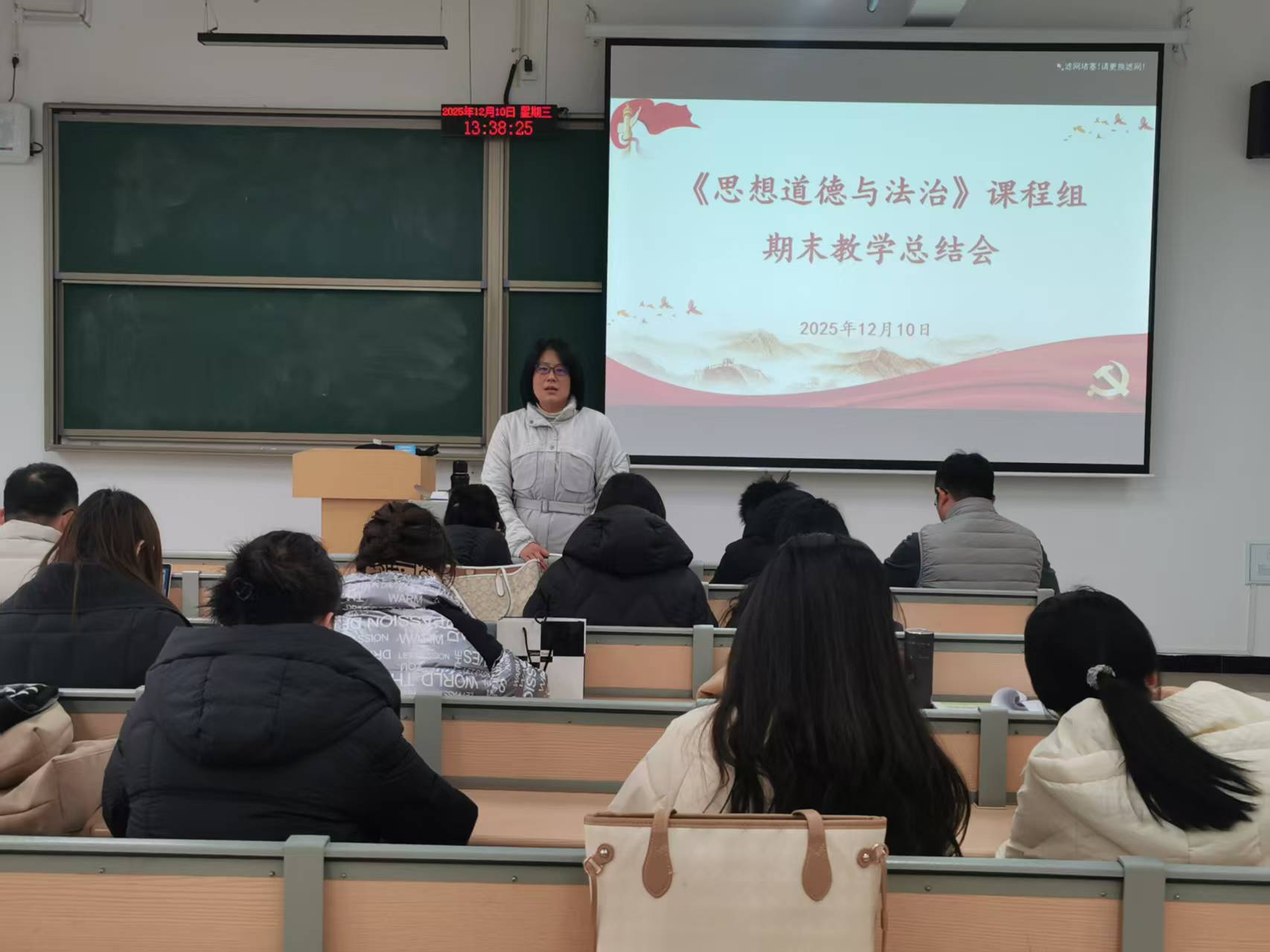 12月10日下午,马克思主义学院《思想道德与法治》课程组期末教学总结会在K1-512会议室召开。会议旨在总结本学期课程教学工作、部署期末收尾任务,马克思主义学院副院长黄春梅出席,德法教研室主任赵见伟主持会议,课程组全体教师参会。